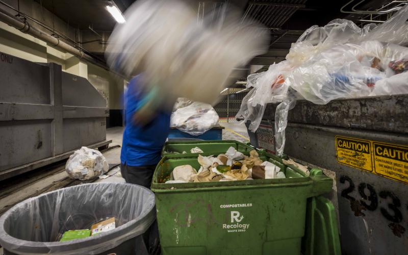 In February 2018, 555 California, San Francisco's largest office building, was diverting only 51% of its waste and facing a 50% surcharge from Recology San Francisco for failing waste audits. Great Forest consultants partnered with Vornado Realty Trust and ABM janitorial services to implement waste sorting procedures and launch an intensive tenant education program to improve upstream waste separation. By May 2019, the diversion percentage had increased to 85% which has been maintained since the inception of the programs. Recology audits have found the building to be sending out waste with less than 10% contamination. 555 California adheres to San Francisco's Mandatory Recycling and Composting Ordinance and is in compliance with the Large Refuse Generator ordinance.The sorting team was first trained in March 2018 by the Great Forest consultant on “what-goes-where” and sorting techniques. Seasonal “what-goes-where” training and an educational presentation are provided to tenants quarterly as well as at lunch n' learns throughout the year. A multi-pronged approach to achieving greater diversion has been developed emphasizing implementation of centralized collection by tenants and usage of dishwashers. "We are proud to have achieved TRUE Certification, the result of a long-term collaborative effort by our dedicated property management team, janitorial staff, zero waste consultant, landscapers, our environmentally conscious tenants and vendors," said Diana Rosenblatt, General Manager for 555 California Street Campus, Vornado Realty Trust. "This milestone demonstrates Vornado’s commitment to operational excellence and fostering a collaborative culture in the journey to zero waste." Learn more about the facility's TRUE Certification in their case study and the Vornado Realty Trust 2023 Sustainability Report, on pages 58-59. Photo credit: Vornado Realty Trust