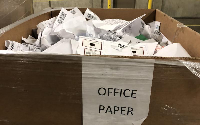 - Examples include: Individual 30 yard containers for landfill and glass disposal; baling of sorted color and clear PET/LDPT Plastics and cardboard; shredding and separating multi-color plastic strapping; separating hard plastics, films, loose paper/cardboard, scrap metal; etc.